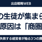 2026年2月7日 / 最終更新日 : 2026年2月7日 銘苅拓也(めかるたくや) 塾・スクール 塾の生徒が集まらない致命的な原因は「商圏」にある? 失敗する経営者が陥る3つの罠 まず疑うべきは、集客手法ではなく「商圏」です 生徒が集まらないと、多くの塾・スクール経営者は次のように考えがちです。 しかし、こうした戦術を検討する前に、必ず確認すべき「前提条件」があります。それが**「商圏(エリアの市 […]